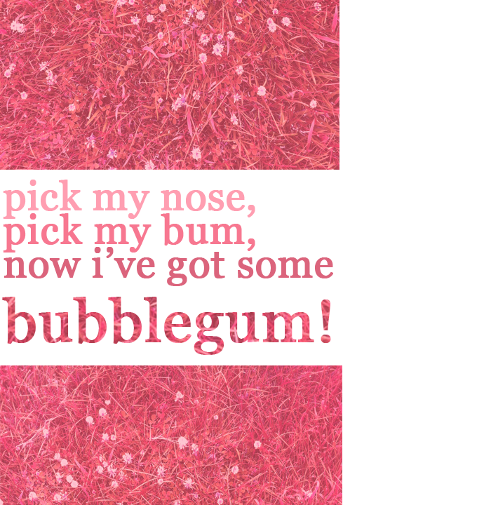 For whatever reason, I loved this disgusting song. My grandmother would despair of me singing it, asking in a sweet voice "Samantha, isn't there something else that you would like to sing for Gramma?"; nope, I knew what I liked, and I liked Bubblegum